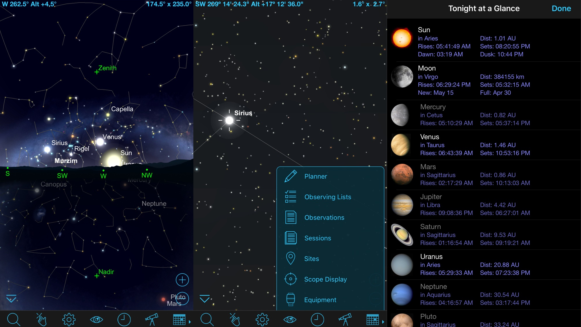 This app goes beyond in various ways, though, with a colossal object database, a slew of planning and observation tools (including graphs, session notes and data backup), and the means to control your telescope with the app. This can be done by tilt, but it’s much more fun to bellow “center on Polaris” and have your technology immediately obey.